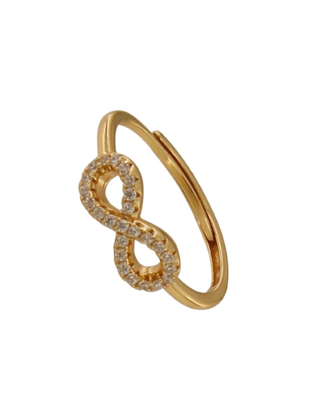 S-2278 - SORTIJA DE PLATA CHAPADA EN ORO CON MOTIVO DE INFINITO CON ABERTURA TRASERA