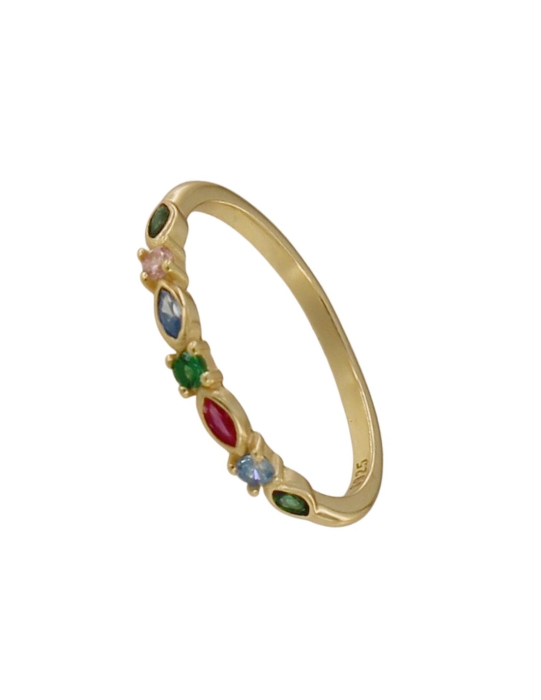 S-2318 - SORTIJA DE PLATA CHAPADA EN ORO CON PIEDRAS DE COLORES