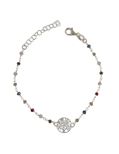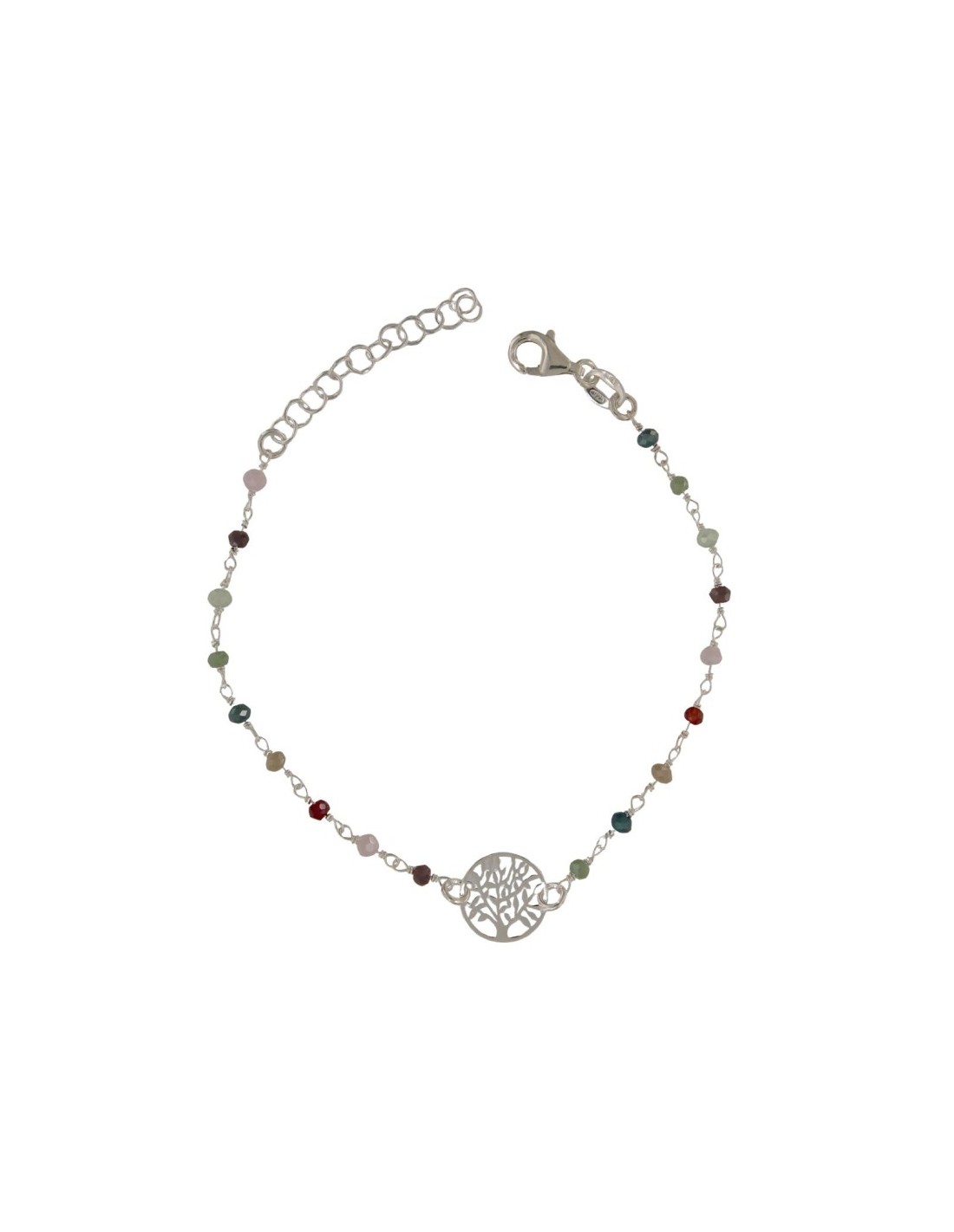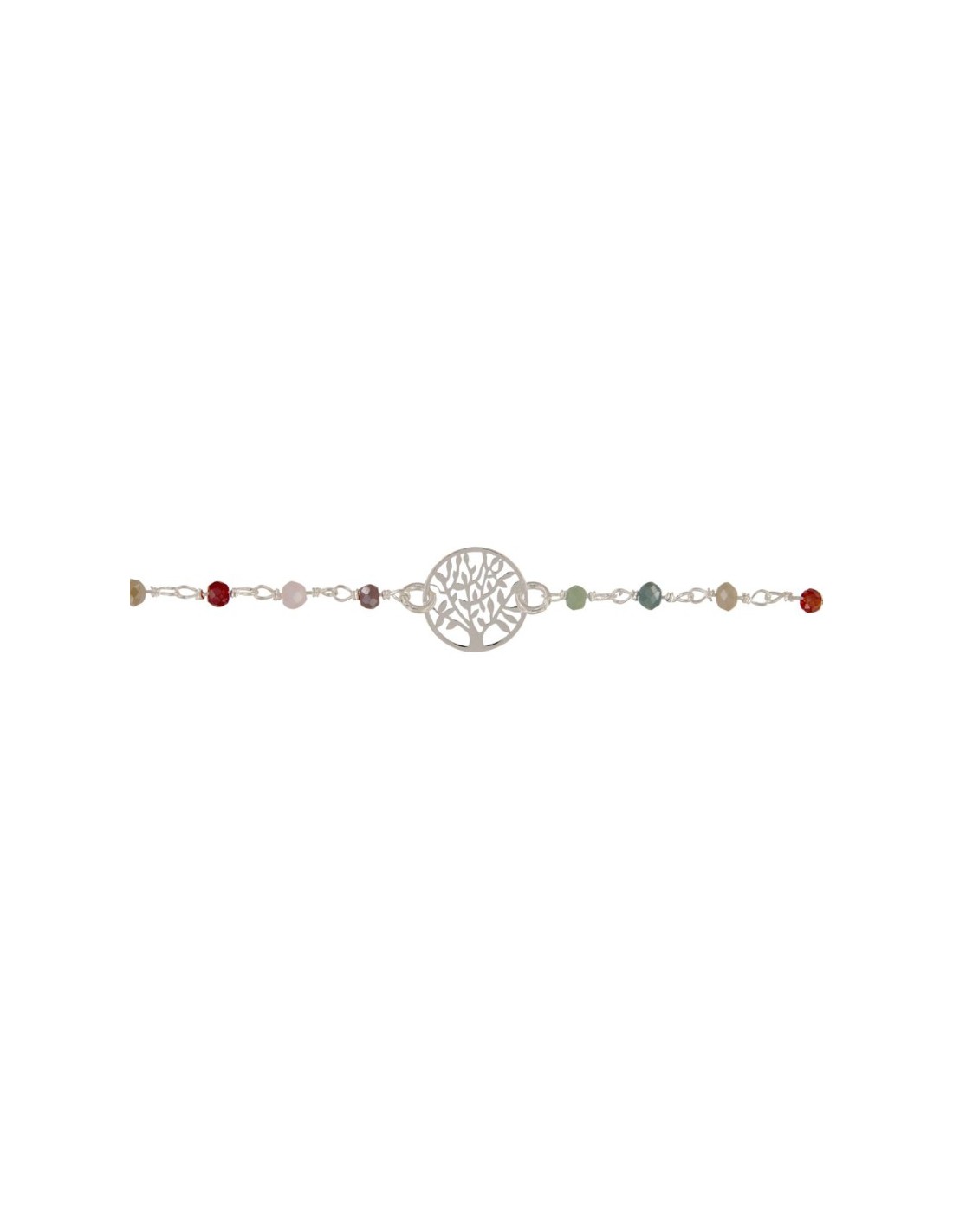 PUL-5130 - PULSERA DE PLATA CON PIEDRAS DE COLOR Y MOTIVO DE ÁRBOL DE LA VIDA DE 16 CM + ALARGADOR